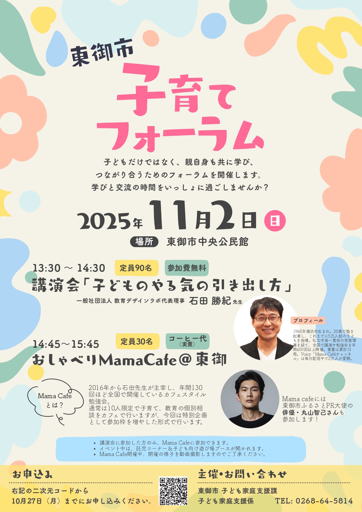 教育専門家 石田勝紀さんをお招きし、講演会とMama cafeを開催いたします。